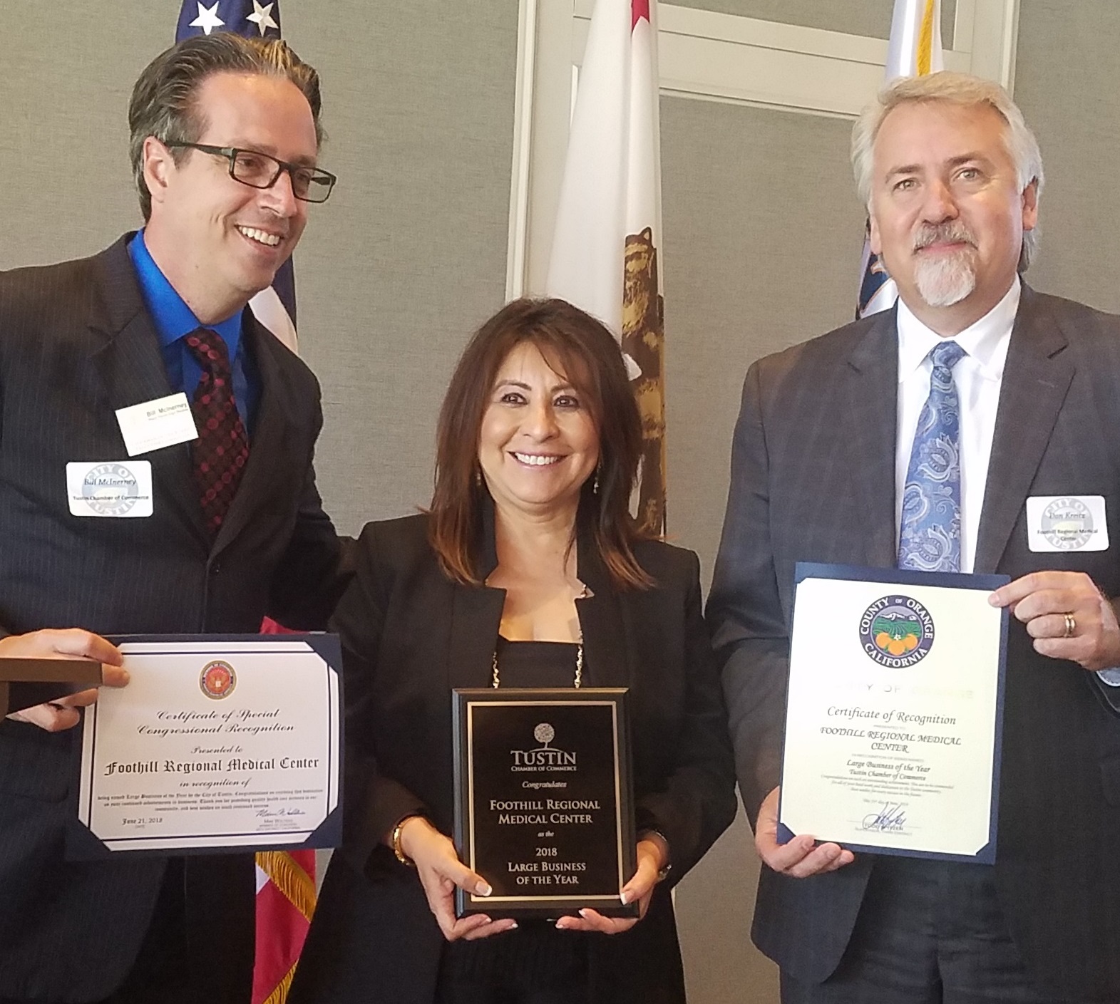 Pictured: Receiving the award on behalf of Foothill Regional Medical Center are Araceli Lonergan, CEO, with Don Kreitz,…