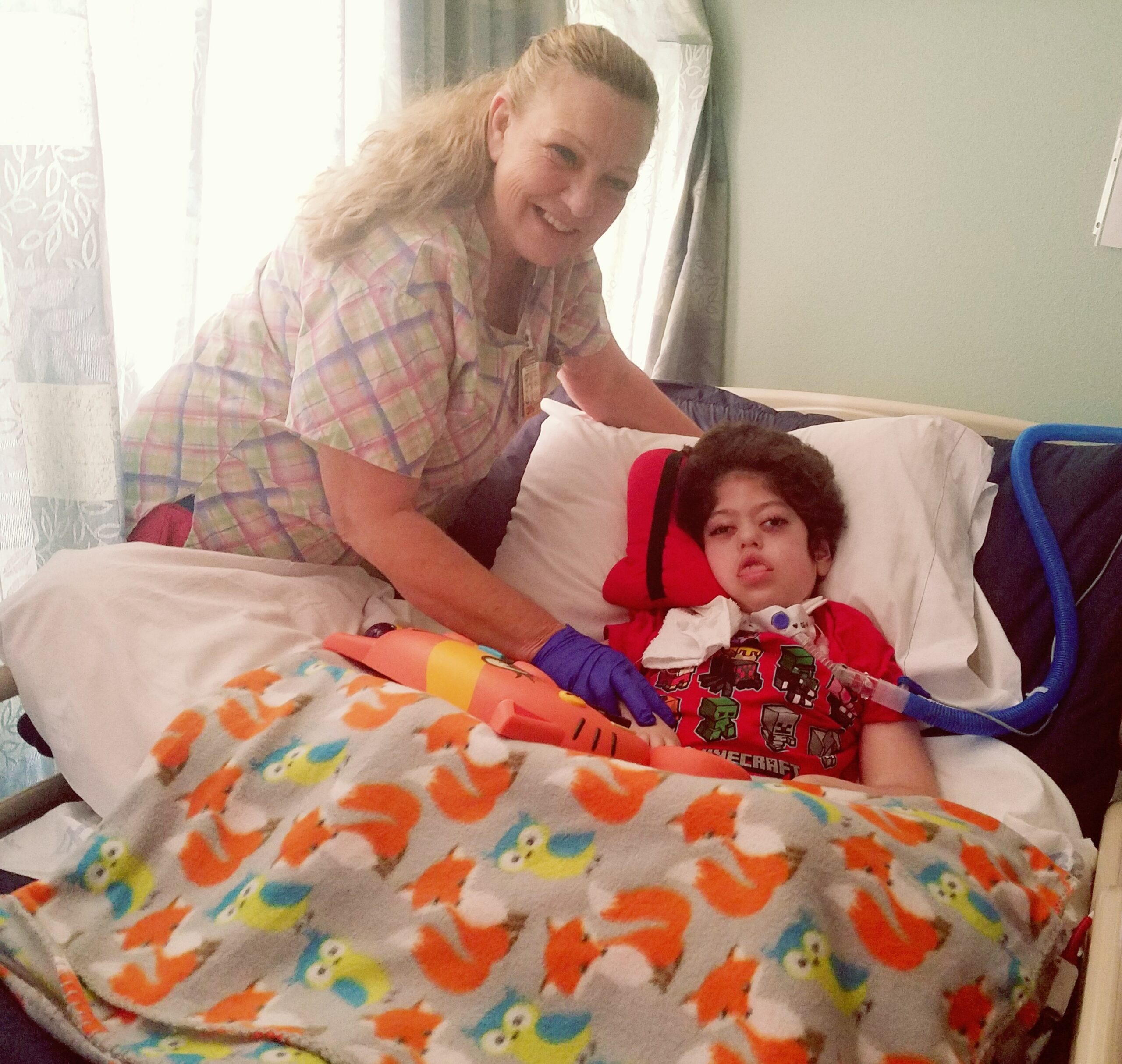 (Pictured: Pediatric subacute staff) On Dec. 5, 2018, Santa Claus—escorted by the Tustin Police Department—delivered gifts to Foothill…